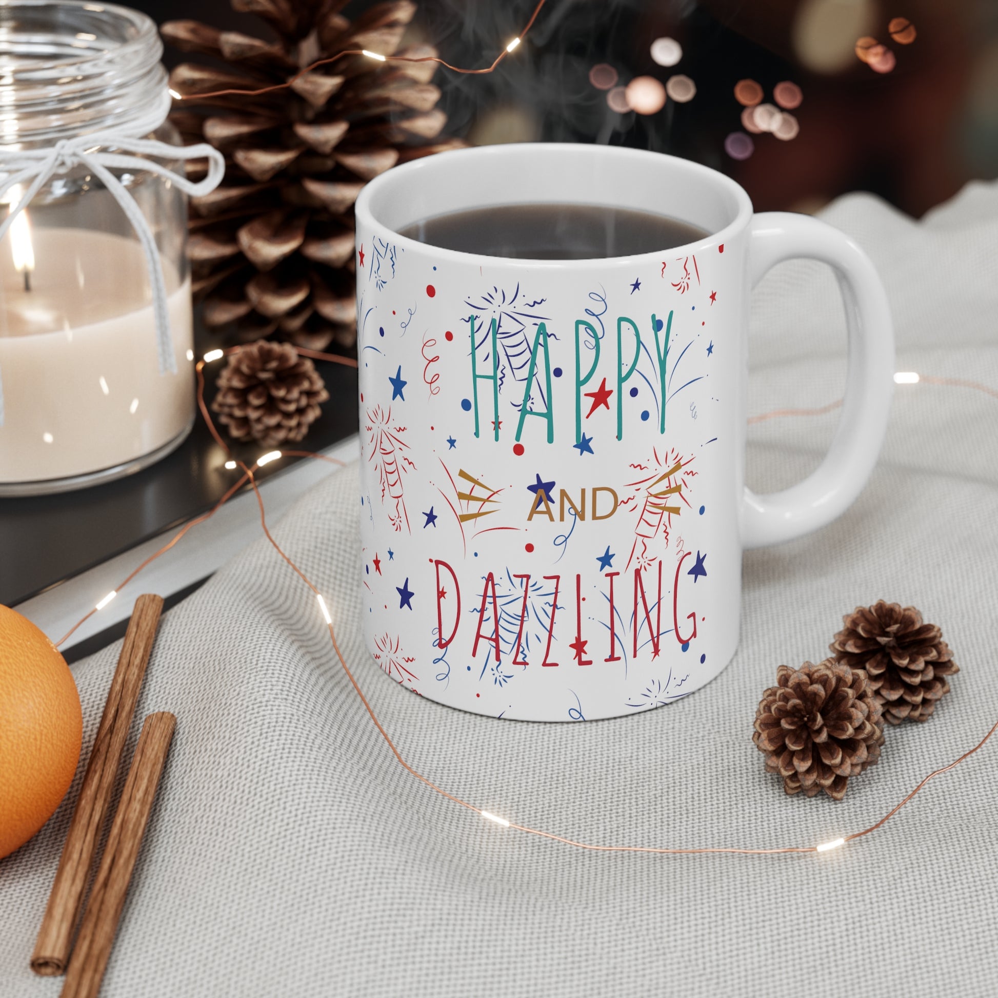 Happy and Dazzling custom mug is for those who truly believe there’s nothing better than a cup of your favorite beverage in hand. The mug is made of white, durable ceramic and comes in 330ml (11oz) size. The perfect gift for every true coffee or tea lover.
